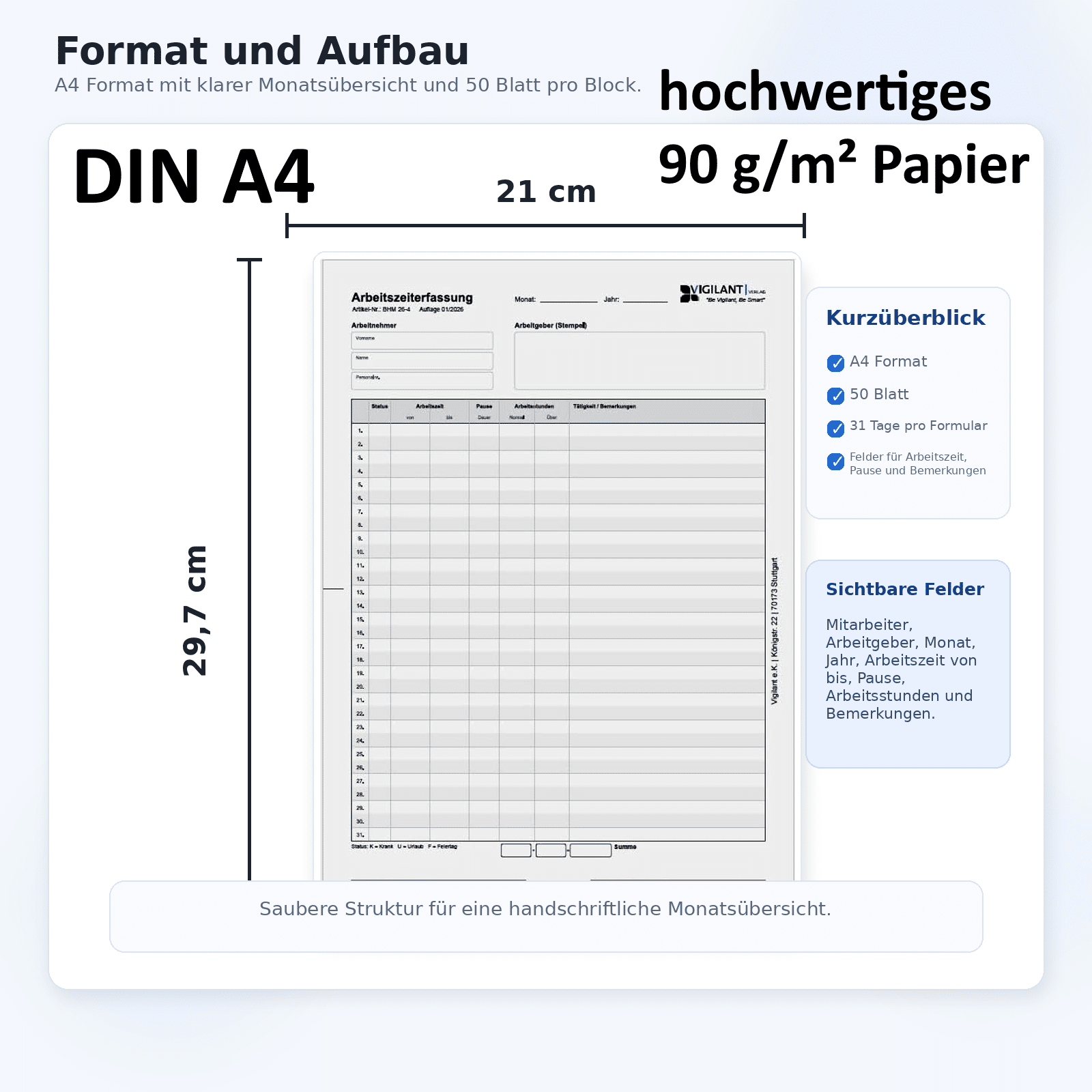 – Übersichtliches A4-Format – auch von Hand gut lesbar